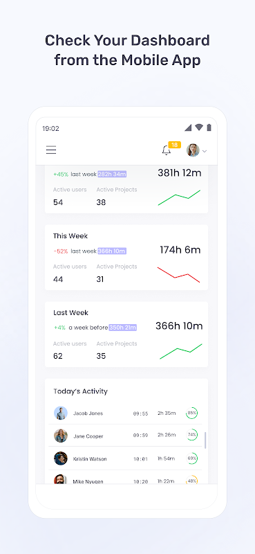 Note: The mobile app does not capture screenshots or measure productivity. For AI-powered analysis, distraction alerts, and detailed productivity insights, use the WebWork Desktop Time Tracker.