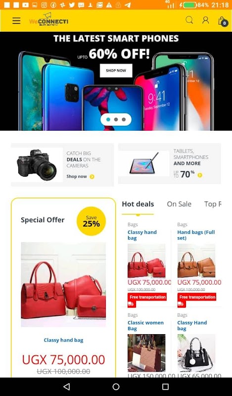 - Multi-device shopping: whether on a smartphone, a tablet or even on a desktop, Weconnecti app will keep all the products in your cart as long as you are logged in to your account