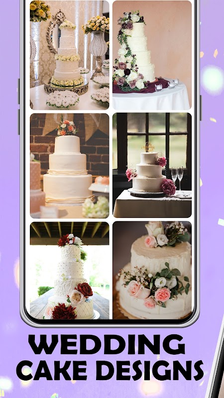 Elevate your special occasions with the Wedding Cake Designs app! Find the wedding cake design that you like the most and share it with your friends or family to hear their opinions. Also, you can save the photo on your device to create your unique gallery of wedding cakes.