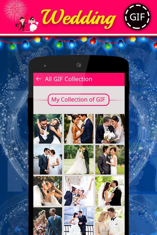In this Wedding GIF application you can use it to send greetings to your friends and family.