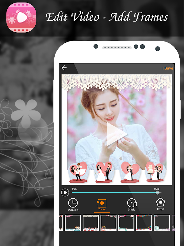 This is application make video slideshow with photos and music on Android. With many effects for video, you can easily video slide show wonderful Wedding Video Maker - Mariage Video