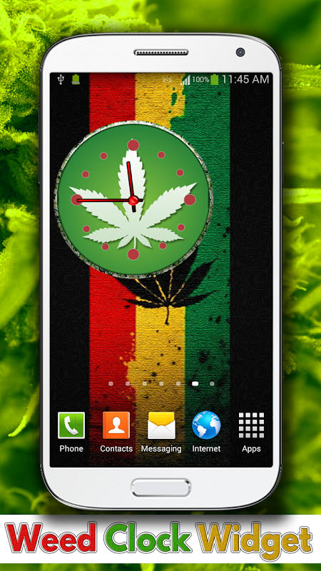 Weed Clock Widget is a legal way to carry marijuana leaves in your pocket always! When you need a break, relax with a weed joint in your hand and on your screen! Combine this large analog clock widget with your favorite Rasta weed wallpapers and marijuana background images and have the best Rastafari themes for your mobile phone and tablet! This weed leaf analog clock widget will blow you mind – simply download this free alarm clock and enjoy your new marijuana app!
