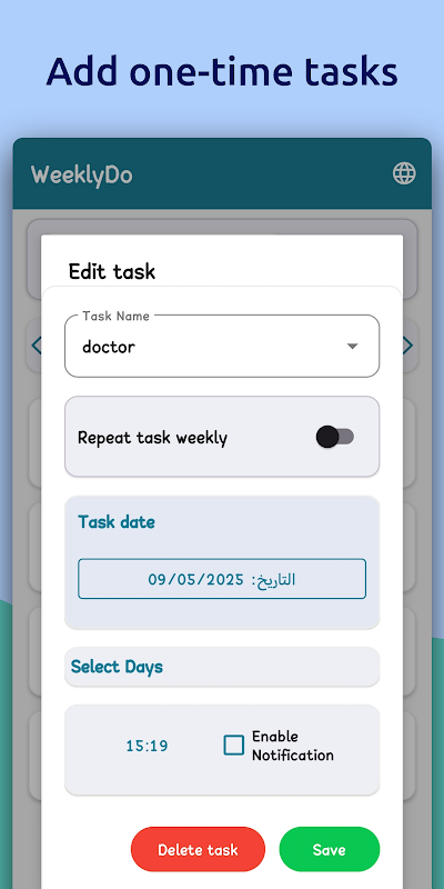 🗓️ Add one-time tasks for specific days without recurrence.