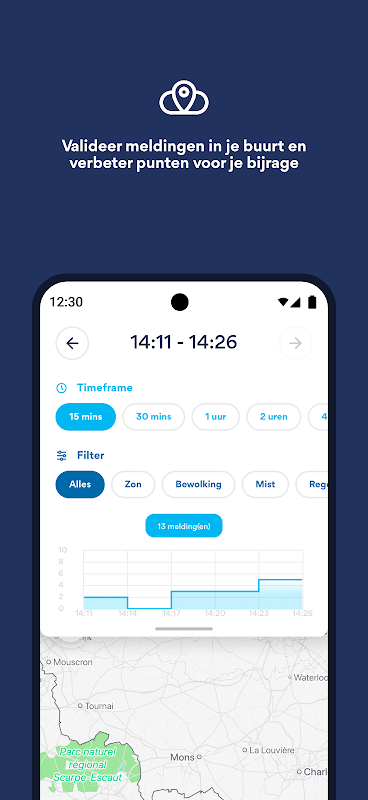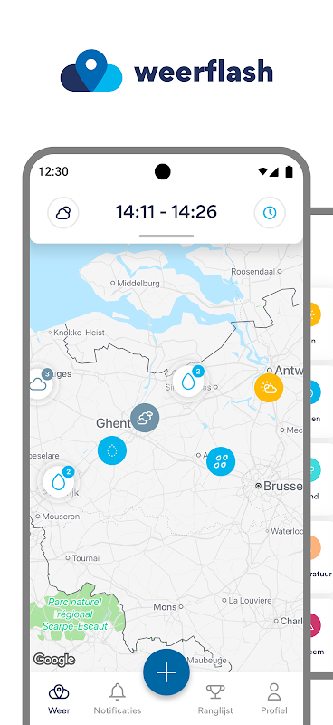• Other users can rate your weather report in Weerflash for accuracy, allowing you to collect points. These points are sometimes also converted into unique badges that you can earn by using the weather app!