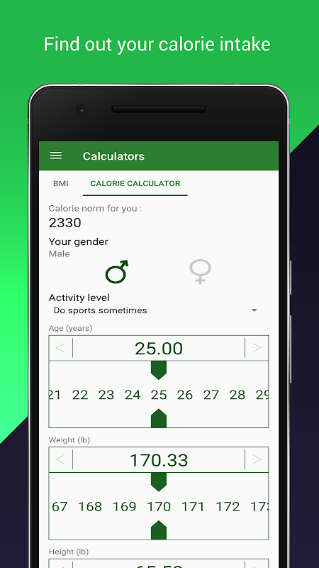 With our application, you can easily calculate BMI (Body Mass Index) and find out the weight norm for your height. The app's graphs will show you how much weight you need to lose or gain to the required mass, which will help you control your weight. Also, the app includes a weight control diary that records your achievements on the way to your goal. With the help of the calorie calculator, you will be able to calculate your calorie allowance. This app will help you lose weight.