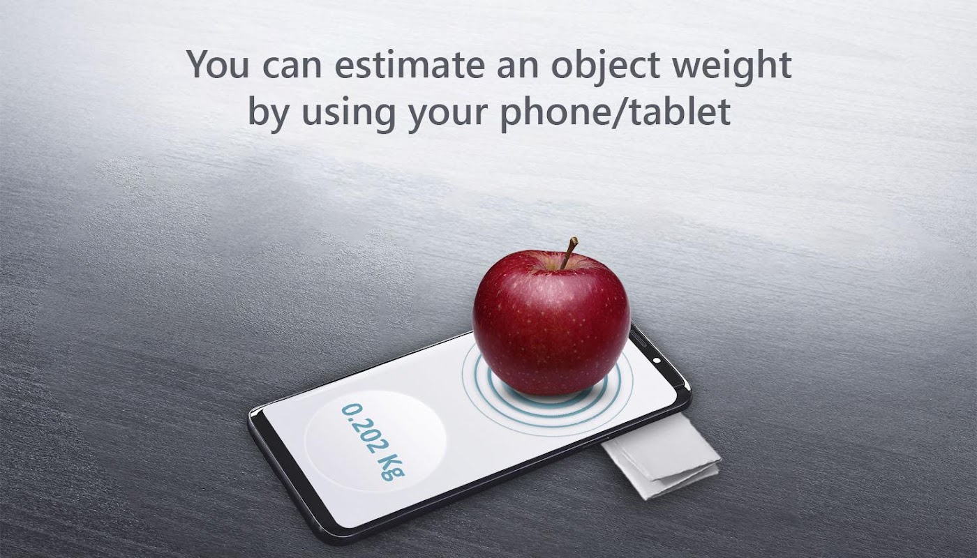 You can use this electronic scale balance app as a digital scale weight for your phone to estimate the weight for objects that do NOT exceed 500 gr /1.1 lb / 17.64 oz. If you try to put weights greater than that, the phone weight scale estimator will stop measuring. These limits help avoiding screen scratch and are wide enough to let you estimate the weight through our weight scale app in grams, in pounds or in ounces of all ordinary fruits or other kitchen ingredients. It works admirably as a kitchen weight scale app.