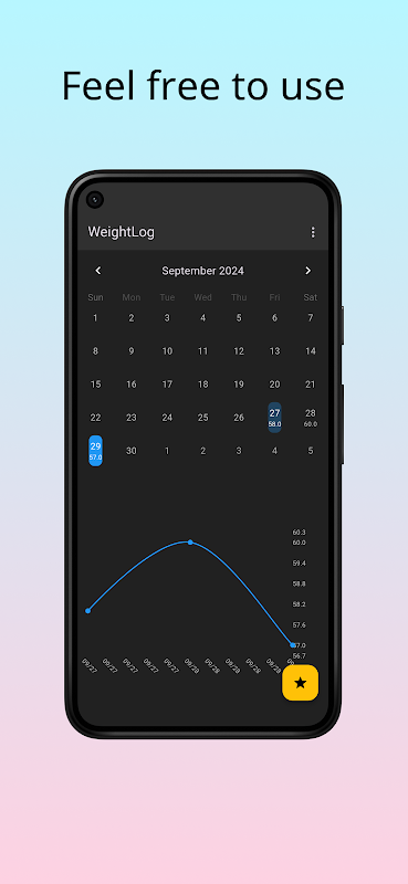 Record your weight daily in the calendar and manage it simply and intuitively. Ideal for dieting or athletes! Displays weight trends clearly in a graph.This app allows you to record your daily weight on a calendar and manage it simply. Ideal for those on a diet or athletes, it includes a graph feature that lets you quickly see weight fluctuations at a glance. The app is very easy to use, with intuitive operation, so anyone can start using it right away. By recording your weight on the calendar, you can visualize daily changes and maintain motivation to achieve your goals. All past data is saved, allowing you to look back at any time. Start managing your health with this simple and efficient weight management app.
