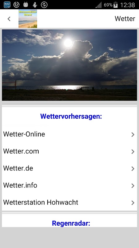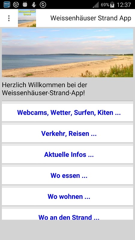 Weissenhäuser beach app with webcams, weather, wind, surf, beach, appointments ...