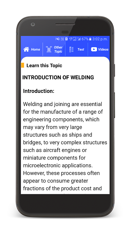 ✴ Now you can study anytime, anywhere through the mechanical engineering app. Welding Technology has lot of features like you can track your learning, set reminders, edit the study material, add favorite topics, and share the topics with friends.