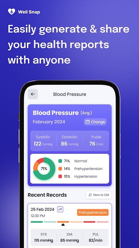- AI-Powered Snap & Log – Take a picture of your BP or glucose monitor, and let Wellsnap read and record the data automatically.