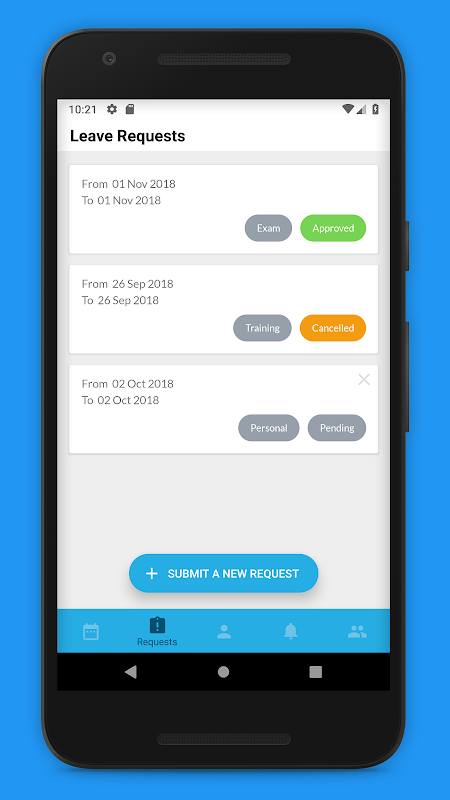 This mobile application is specifically for users to view their schedule / allocations, submit leave, and request swaps.