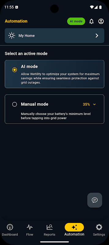 With smart features like AI Mode, your system automatically optimizes battery usage to save you more and keep the lights on during grid outages. Whether it’s managing one home or multiple properties, the Wetility App makes energy effortless.