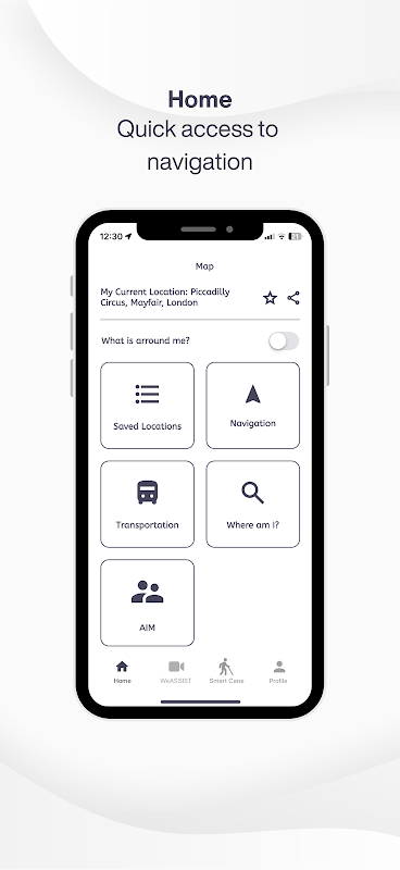 WeWALK is an application that you can use with voice commands in accordance with the accessibility standards, suitable for the use of the visually impaired. Accessibility services permission is required to use this feature.