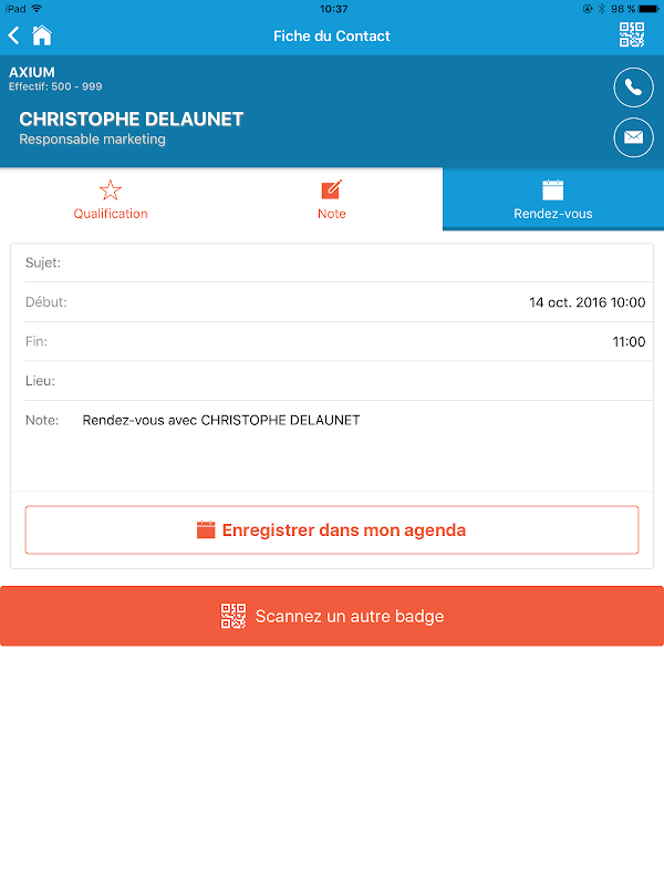 With this application, you can qualify your contacts, publish notes, arrange meetings and import directly these contacts in your phone.