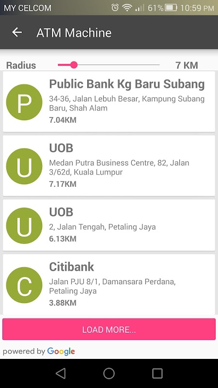 • Change radius of searching up to 50 KM