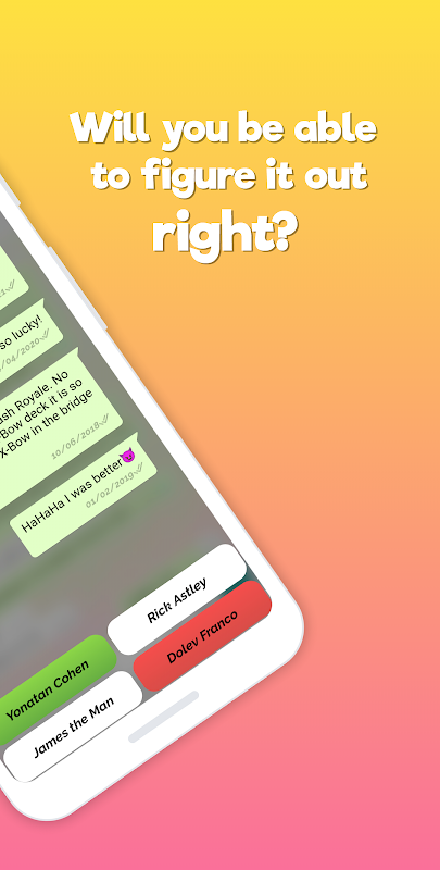 In Whats Roulette, you compete with your friends to quickly guess whose message is shown.