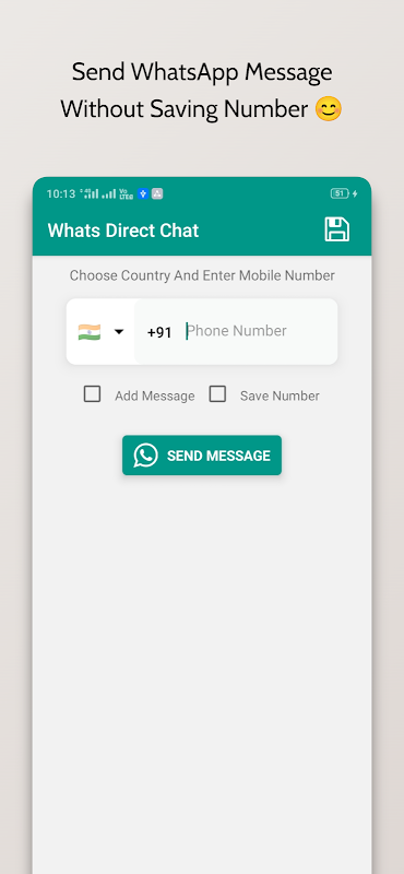 WhatsDirectChat helps you to send message without saving number in your contact.