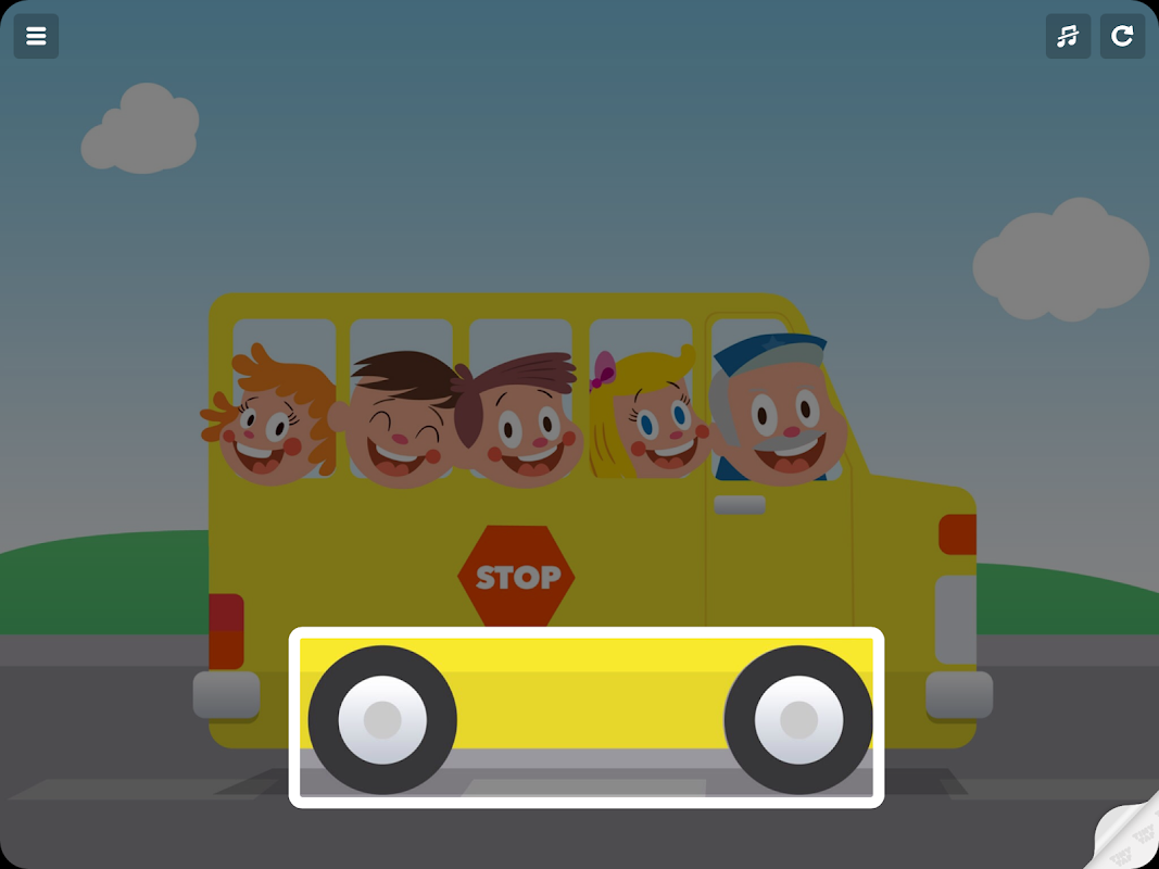 Tap the right part and sing along to 'Wheels on the Bus!'
