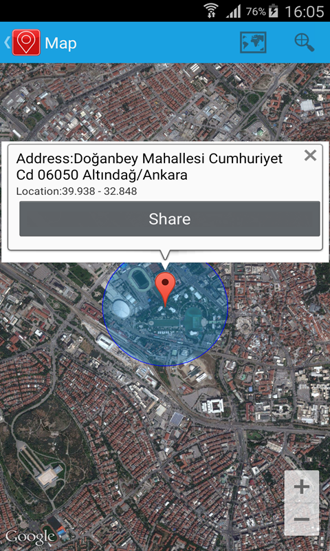 -Map Type (Normal, Hybrid, Satellite and Terrain)