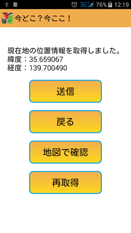 v1.2 「今どこ?を送信」画面に「再取得」ボタンを追加しました。