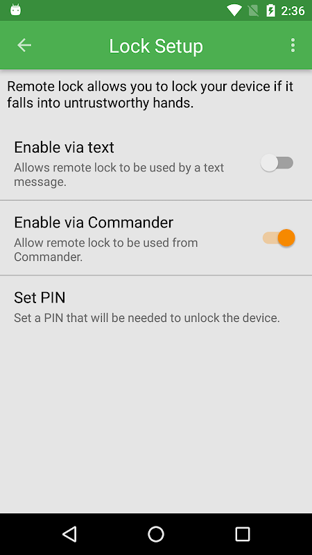 ~ Remotely lock device - (Requires Android 6.0.1 or less)