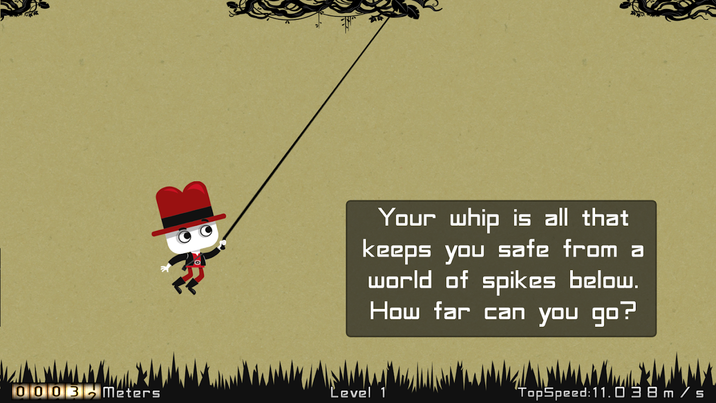 Touch anywhere on screen to whip & swing, lift your finger to release the whip.