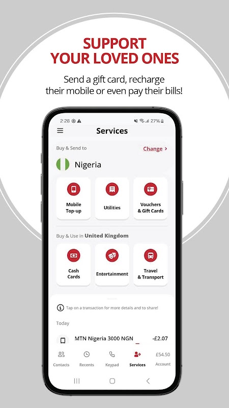 • Support family back home by paying their bills: electricity, internet, TV, and more!