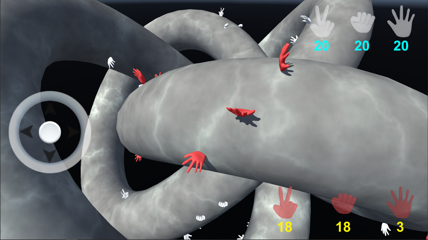Use the principles of rock-paper-scissors, send your red-hand troup, and conquer the white-hand army.
