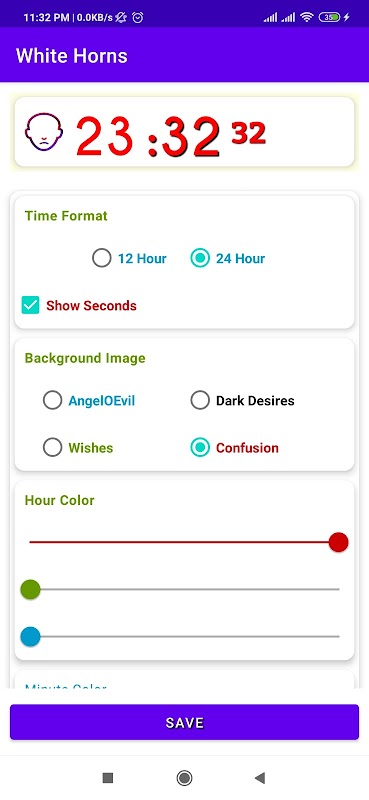 Click on White Horns App and it will open settings. Change settings as per your requirements.