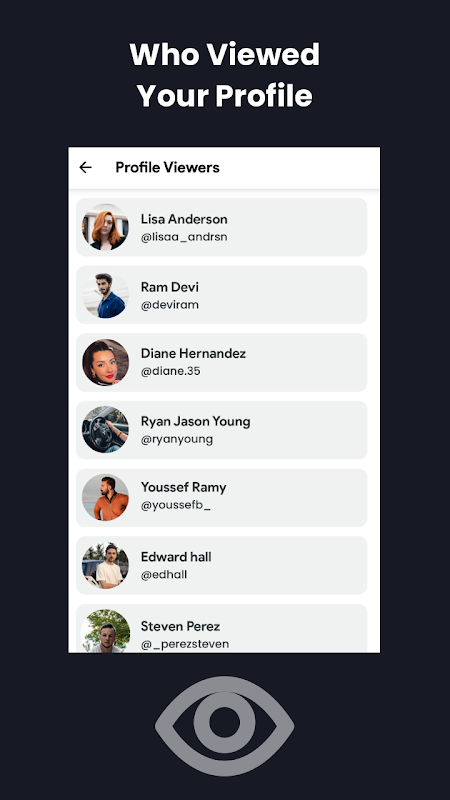 Who Viewed My Profile for Inst is a comprehensive profile analysis tool that helps you track and monitor your Instagram profile activity. This app makes it simple to discover who has viewed your profile and provides detailed daily analytics about your account. Key features include follower analysis, instant notifications about blocks and unfollows, tracking of gained and lost followers, access to HD profile pictures, and the ability to identify profile visitors and secret admirers. The app also provides general profile information and lets you see who follows your account, giving you better insights into your Instagram presence and engagement. With this analytical tool, users can now monitor their followers more effectively and stay informed about their profile's performance and visitor activity.