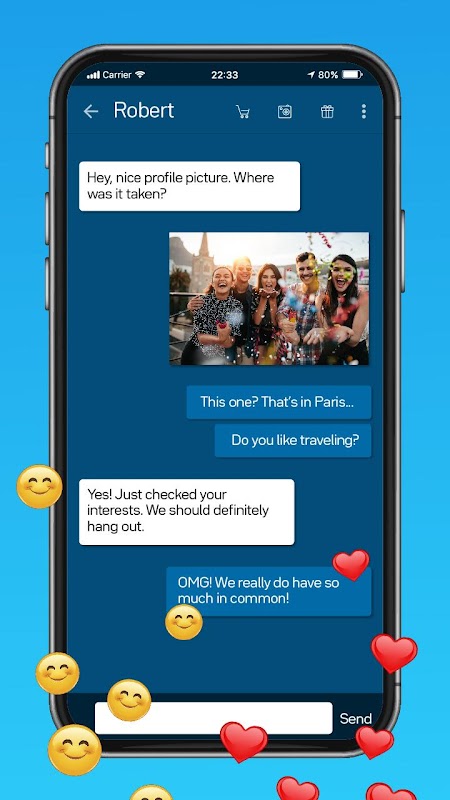 Over 8 million awesome people use WhosHere every day to make friends, socialize, chat, date, exchange photos, flirt, find their love interests, and get found by people they like. Most of them are based in the US, the Middle East, and Europe; so if you’re in these regions, WhosHere is your best bet.
