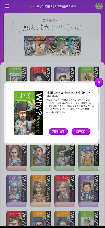'Why? 피플 시리즈'는 기존의 'Why? 시리즈'와 또 다른 새로운 기능을 추가하여 휴대폰에서도 책을 편안하게 감상할 수 있도록 개발되었습니다.