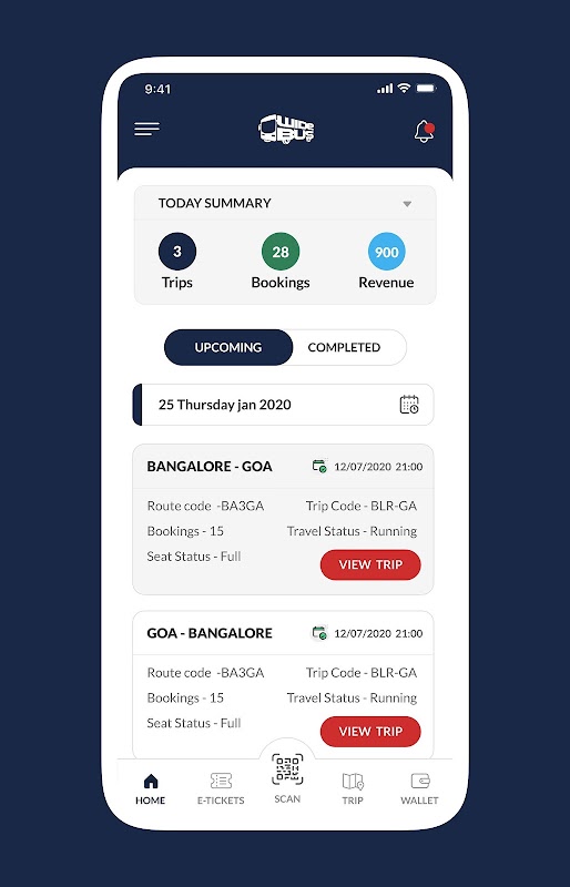 Current journey or trip status will be available with brief report with, passenger ,fare,stop and time details .