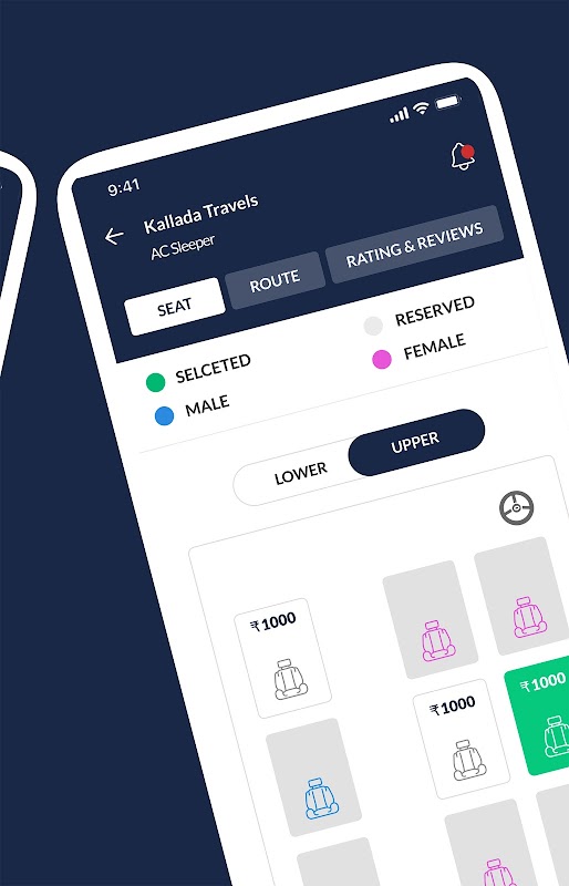 You can search busses based on bus categories or trip categories. Search list includes bus fare, time of arrival, time of departure, starting and ending point, notification button and more .