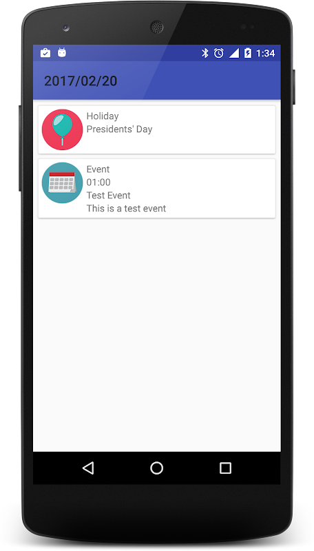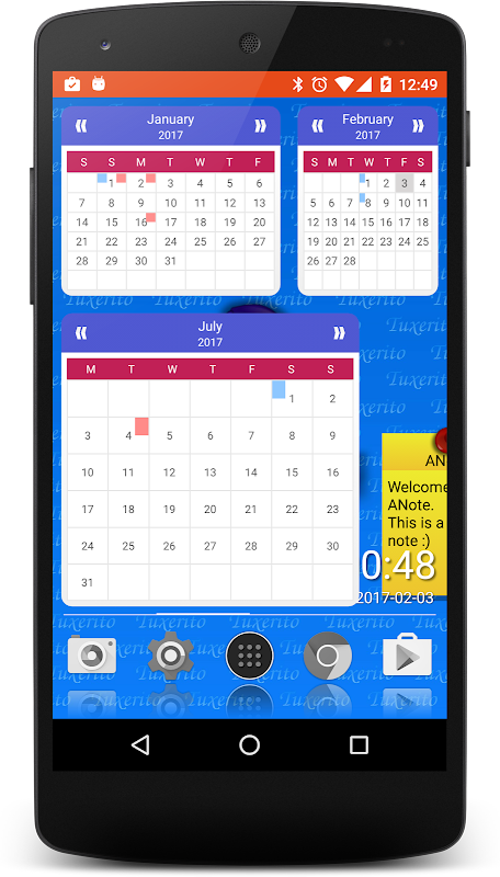 With the calendar in the home screen you can touch in a specific day to visualize the events(blue square) or holidays(red square).