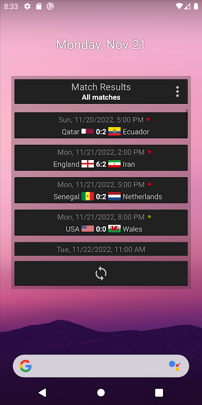 Get the scores of all matches of the soccer world cup right on your home screen.
