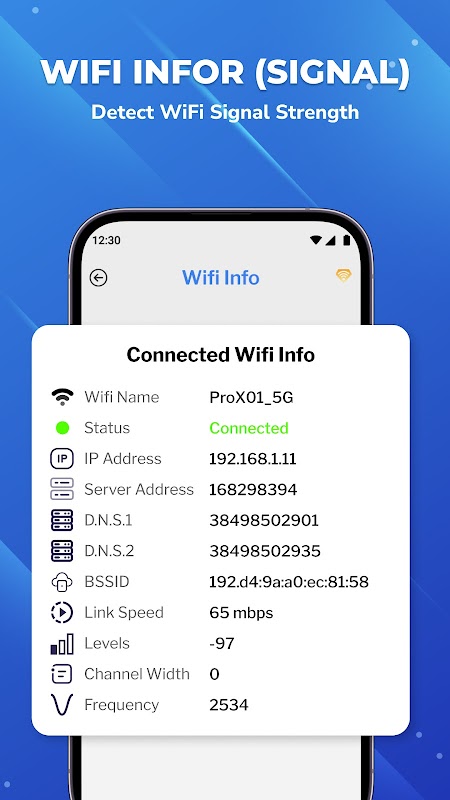 - Improve your WiFi experience by accessing detailed network data to optimize speed and connectivity. Ideal for streaming, gaming, and other high-speed tasks.