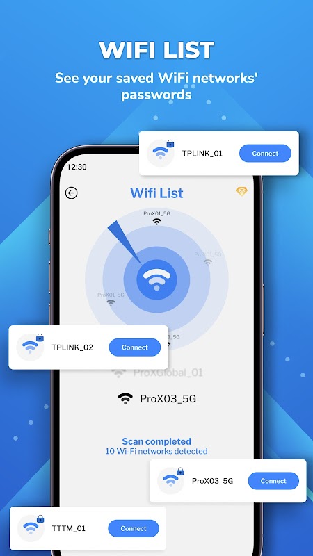 Quickly locate nearby WiFi networks and connect to the fastest options. Our powerful scan technology saves you time and connects you to the best available network instantly.