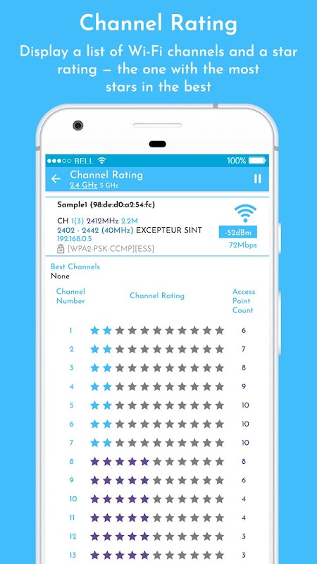 WiFi Analyzer & WiFi Signal Strength Meter shows best WiFi channels near you. Helps you to find a less crowded channel for your WiFi router (shows best available networks).
