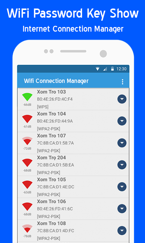 WiFi Password Master key Show recover and show WiFi password , connect wifi automatic and manage all WiFi networks. It is a perfect WiFi password app for your phone! WiFi connection Manager is a WiFi tool for you to analyze your networks and help you to connect to the best available signals! If you are looking for the best wifi device manager, optimizer & analyzer then this network tool must be your first choice!