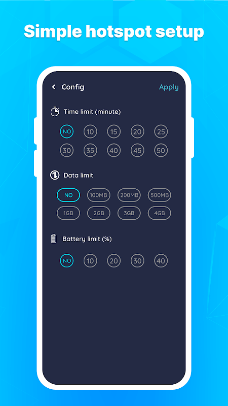 ✅ Step 2: Select limit config to limit time, select data, limit battery as you want.