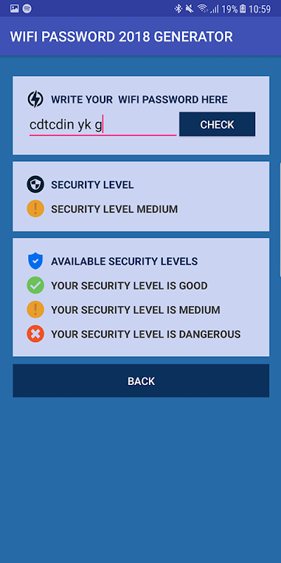 Also contains a function to check your wifi pass security. After checking you will get if your security is good normal or dangerous.
