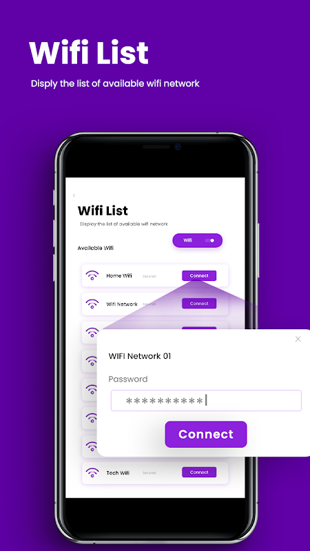 You can get important details about the signal strength of close-by networks using WIFI password recovery app. Based on the signal's intensity, choose the right network to connect to in order to create an ongoing and secure internet connection.