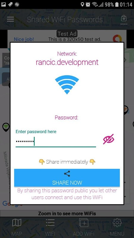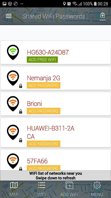 Map for finding or sharing your WiFi networks near you. Just download the app >> Automatically connect to WiFi >> Join our community