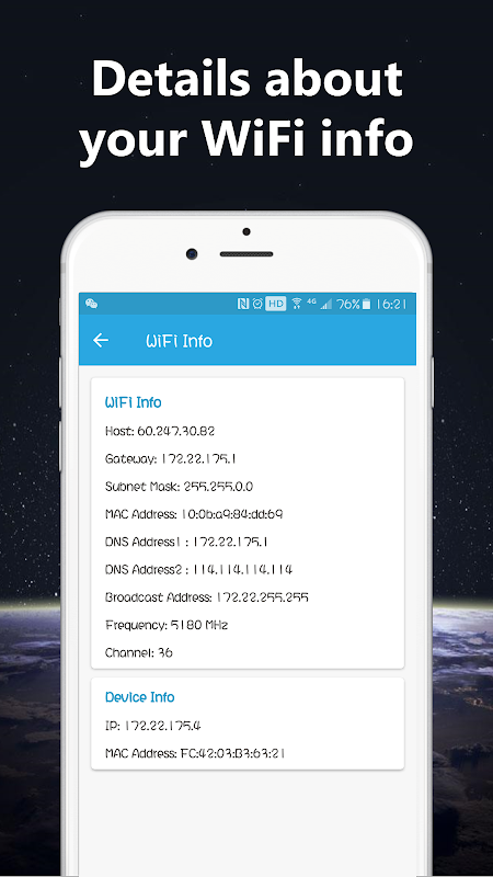 WiFi Signal Strength Meter can View your current wifi connection signal strength and detect WiFi Signal Strength around you in real time.