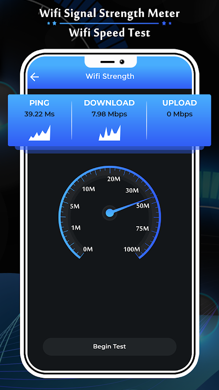 WiFi Signal Strength Meter - WiFi Speed Test app which allows users to get an instant result of WIFI speed. You need to just one tap on mobile screen and start to get a perfect graph of speed test into details like Ping, Downloads, Upload. Find all the information about WIFI with speed, Ip or also frequency.