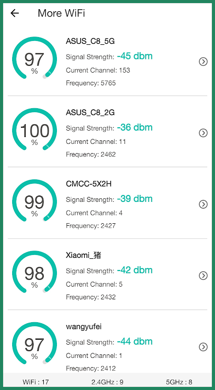 Check WiFi signal strength in real time, find good wifi signal strength nearby.