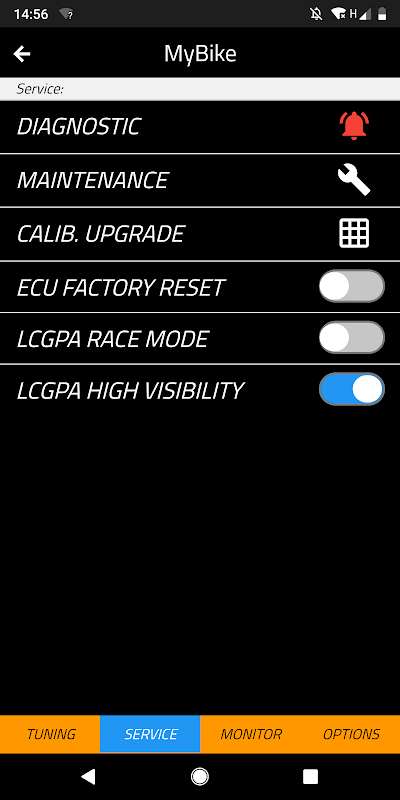 Using WiGET the user can easily select from different pre-set map settings developed by factory, or create a custom one for its needs. Maps can also be shared between users. Depending on bike model, the app also makes it possible to: read ECU hour meter, add service notes, read diagnotics, display real time engine data, and manage user notes.