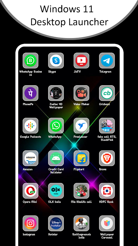 convert your os into Destop theme with Windows 11 style launcher for mobile