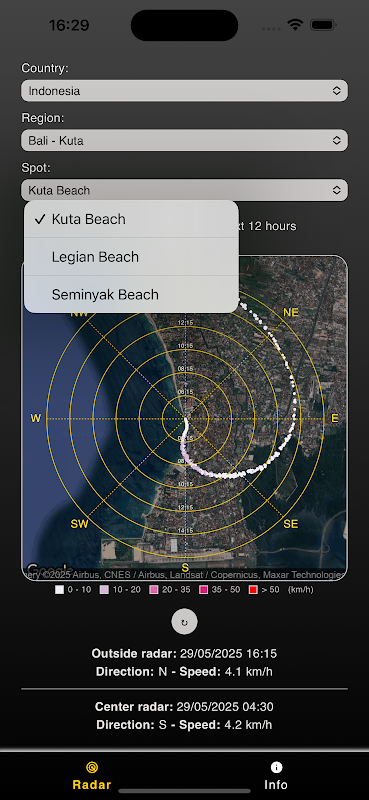 WindRose allows you to check the evolution of wind intensity and duration over the last or next 12 hours. If you are someone who needs to know the state of the sea at a given moment, by understanding how the land wind has behaved, you can infer the sea conditions you will encounter.